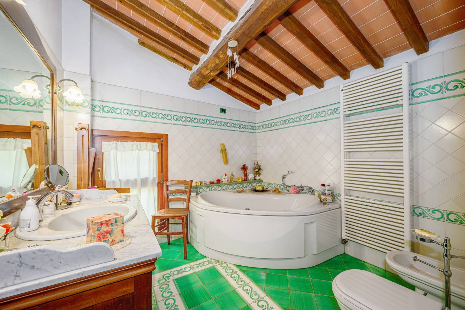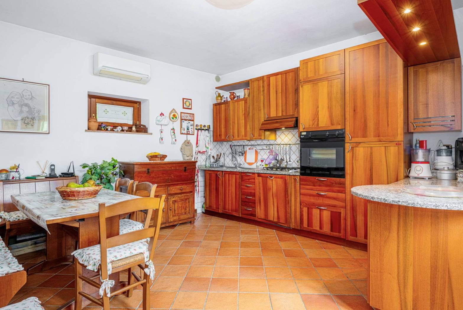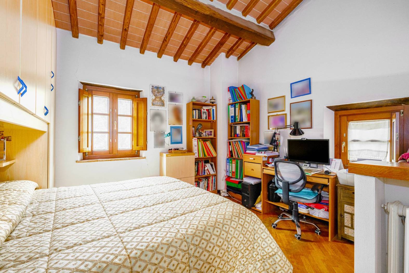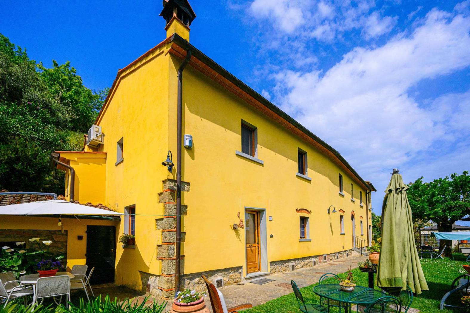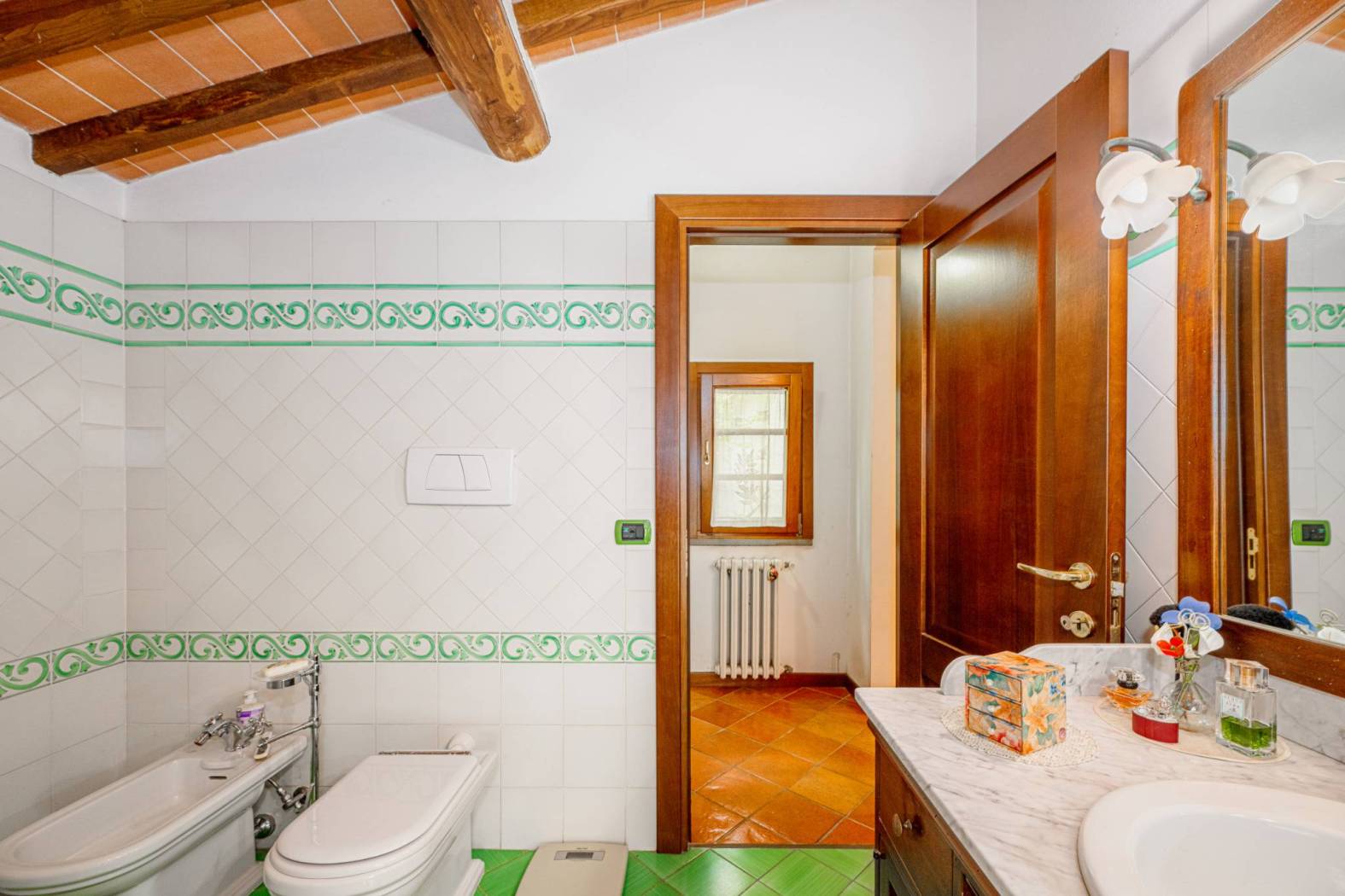 Immersed in the green hills of San Baronto, in a dominant and private position, we offer for exclusive sale a portion of a farmhouse free on three sides, perfect for those who wish to live in the quiet of the Tuscan countryside without sacrificing the convenience of services, reachable in just a few minutes. Located just 10 minutes from Casalguidi, the property enjoys an open and breathtaking view of the surrounding landscape, offering a scenery that changes with the seasons, always in the name of beauty and serenity. The residence: Spread over two levels for a generous and well-organized surface area, the house is composed as follows: - Ground floor: welcoming living room with fireplace, large rustic-style eat-in kitchen, bathroom, closet and laundry room with external access. - First floor: two double bedrooms, bathroom and closet. The finishes recall the Tuscan tradition, with exposed wooden beams, parquet floors in the sleeping area, and details in pietra serena that lend warmth and authenticity to the rooms. Rooms.