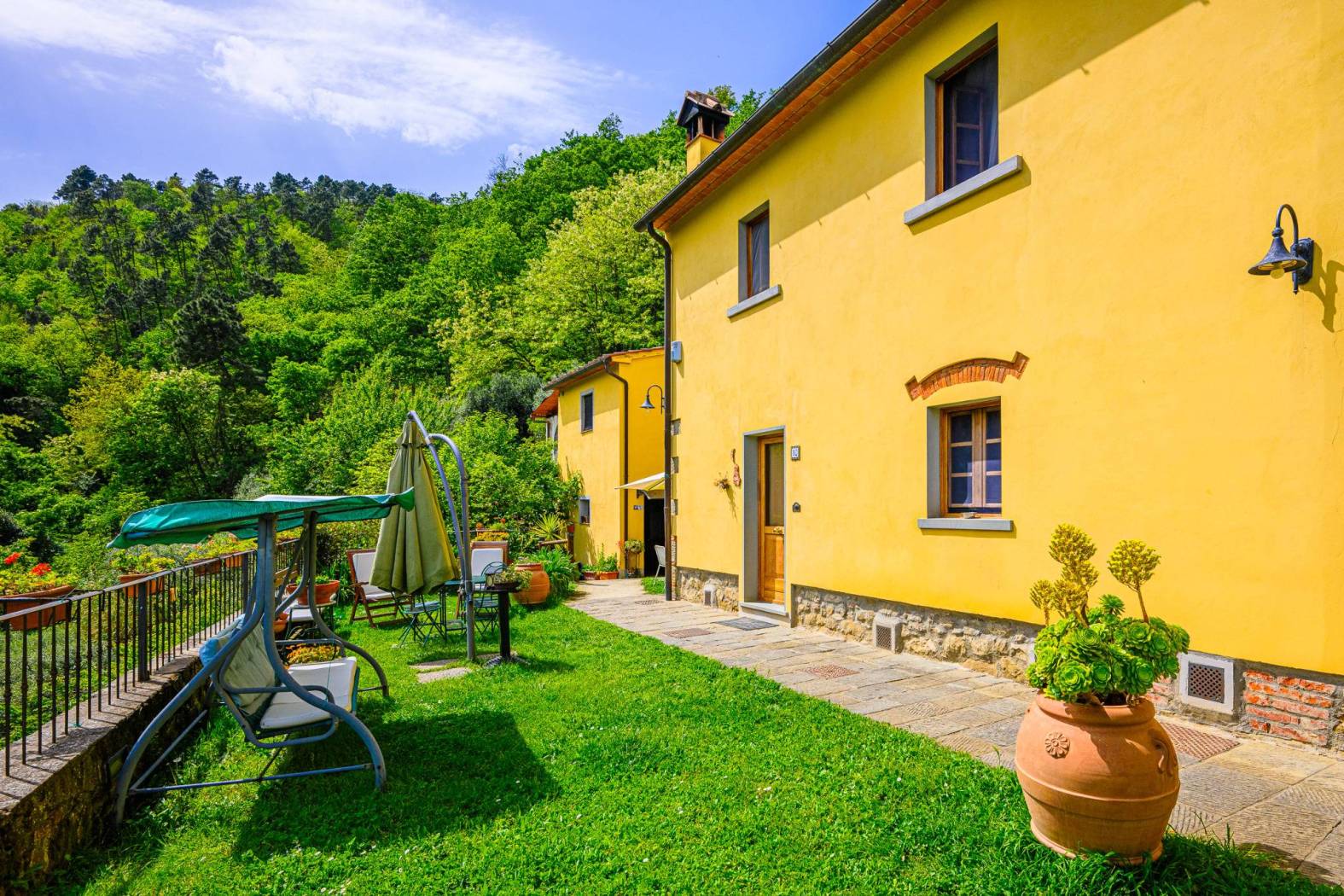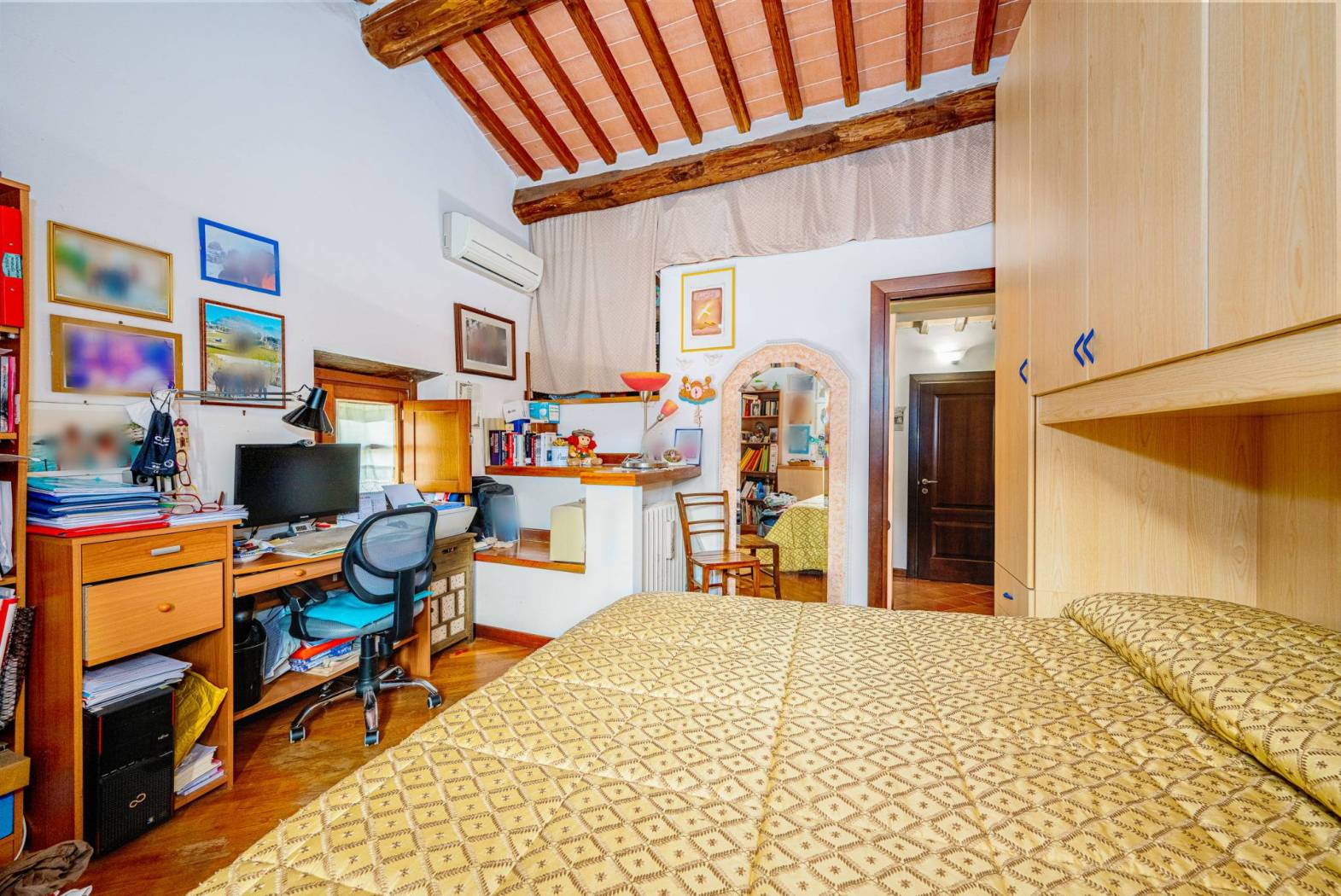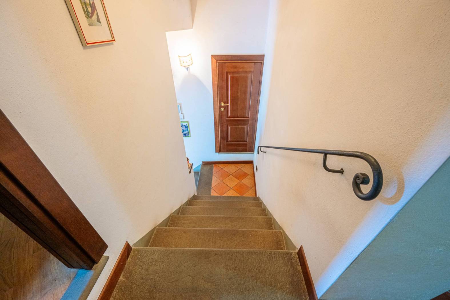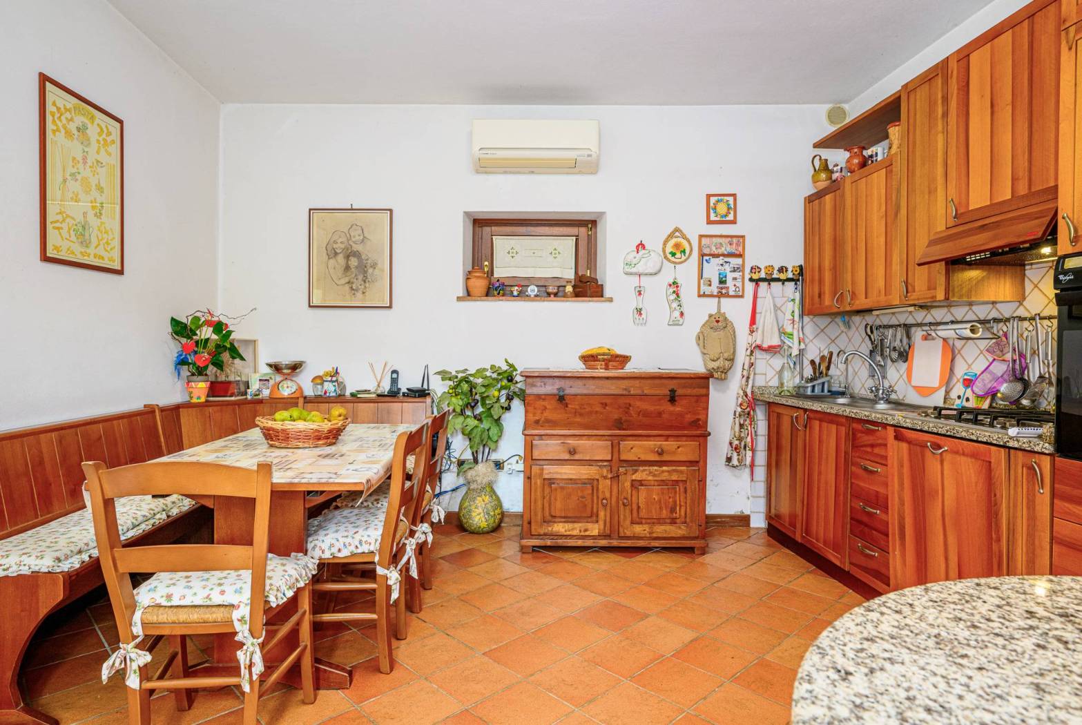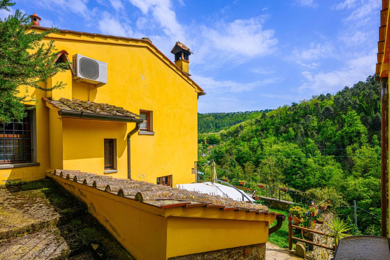 Immersed in the green hills of San Baronto, in a dominant and private position, we offer for exclusive sale a portion of a farmhouse free on three sides, perfect for those who wish to live in the quiet of the Tuscan countryside without sacrificing the convenience of services, reachable in just a few minutes. Located just 10 minutes from Casalguidi, the property enjoys an open and breathtaking view of the surrounding landscape, offering a scenery that changes with the seasons, always in the name of beauty and serenity. The residence: Spread over two levels for a generous and well-organized surface area, the house is composed as follows: - Ground floor: welcoming living room with fireplace, large rustic-style eat-in kitchen, bathroom, closet and laundry room with external access. - First floor: two double bedrooms, bathroom and closet. The finishes recall the Tuscan tradition, with exposed wooden beams, parquet floors in the sleeping area, and details in pietra serena that lend warmth and authenticity to the rooms. Rooms.
